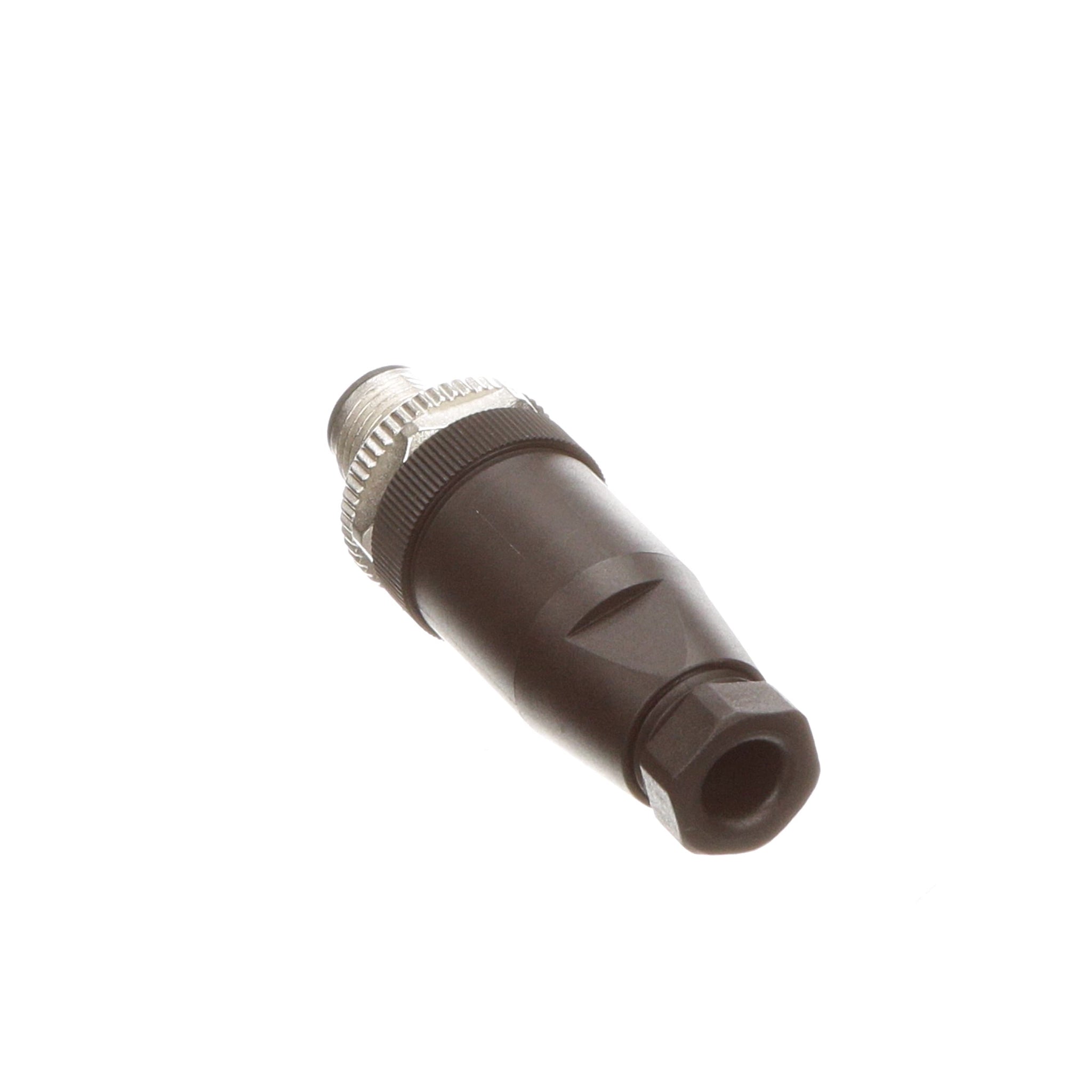 Sensor/actuator straight male connector with screw termination and metal knurl.