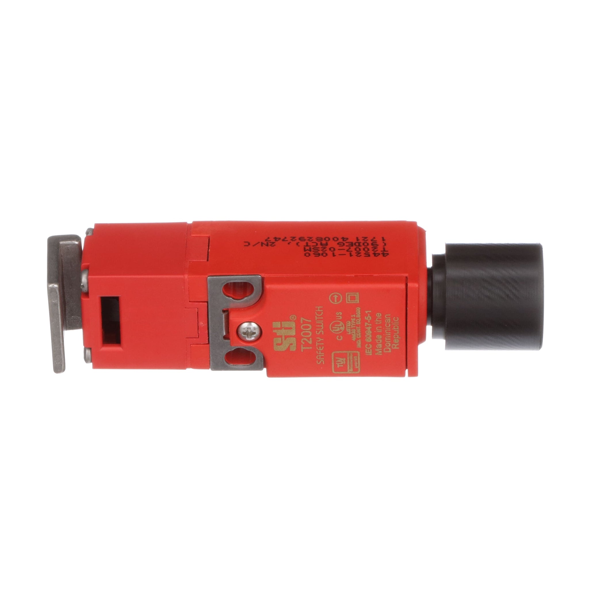 Miniature Size: The smallest tongue-actuated safety interlock switch available. Ideal for smaller machines with space restrictions. Fits on 1 in. square tubing. NEMA 6 Enclosure — Enables the T2007 Series with conduit entry or connector to withstand water wash down cleaning. Rotatable Head: Gives 8 possible actuator entry points for versatile installation. A blanking plug is supplied for the unused entry. Small Swing Radius: Allows use on doors with a swing radius as small as 2.5 in. when using the flex actuator with stainless steel guide. Long Life: The T2007 Series with its stainless steel actuators and optional stainless steel guide is designed for one million actuations.