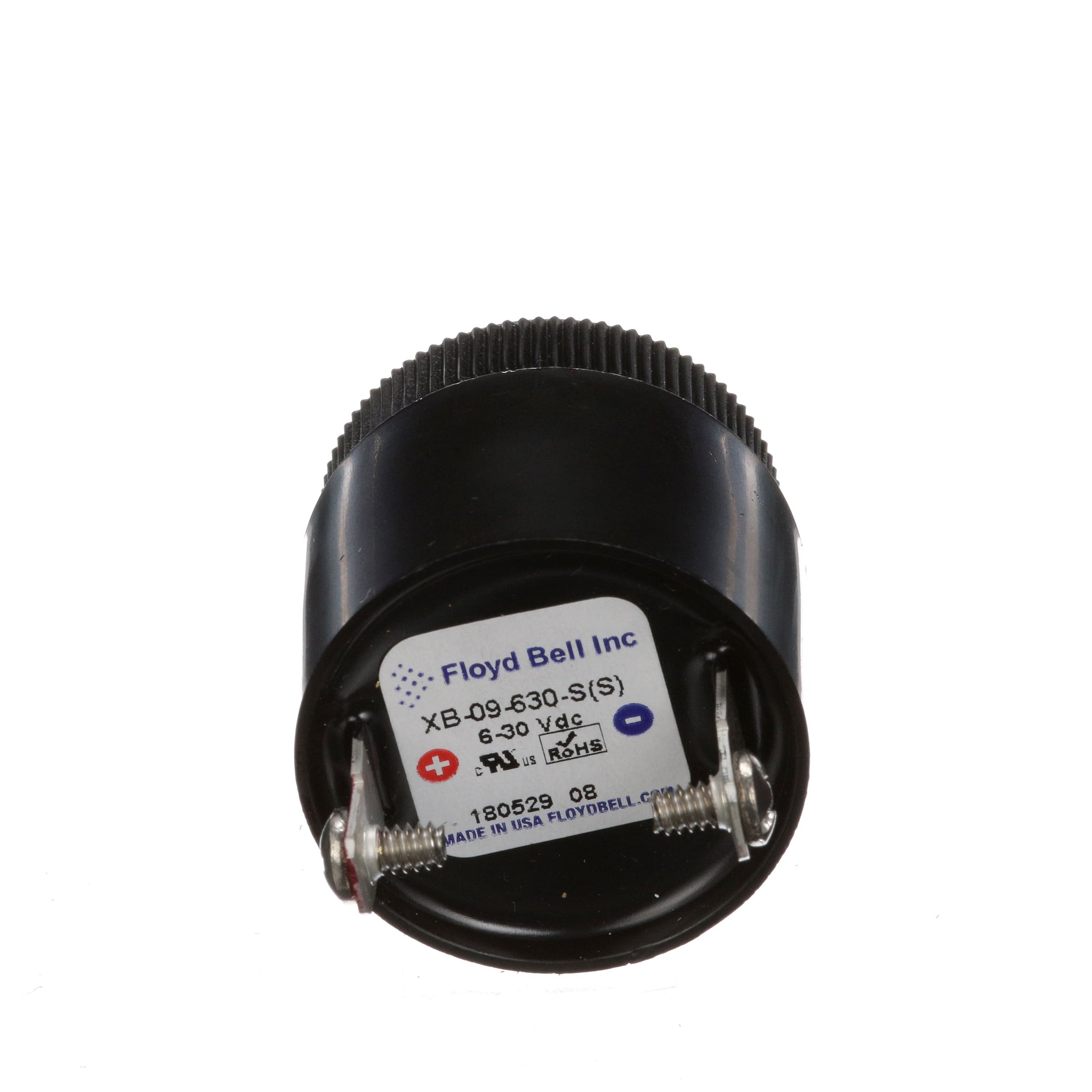 Up to 103 dB @ 2 feet Floyd Bell's AudioLarm® II Series, first sold in 1982 and the subject of continuous improvement and innovation, is a solid-state, environmentally secure piezoelectric alarm that has become the most widely used industrial alarm in the world. The AudioLarm® II Series features a wide operating voltage range, from 1 to 48 VDC, and 5 to 220 VAC. These alarms also offer low voltage and low current consumption, no R.F. interference, and no moving parts for high reliability and long life like all other Floyd Bell alarms. Available mounting configurations include panel mount through a standard 11⁄8" round hole, as well as PC board mount. UL, and NEMA 4X on 07 and V09 bodies with gasket. Our shutter-type manual volume control provides variable attenuation of up to 20 dB. 100% made in the U.S.A. AudioLarm® II Series alarms are UL recognized components.