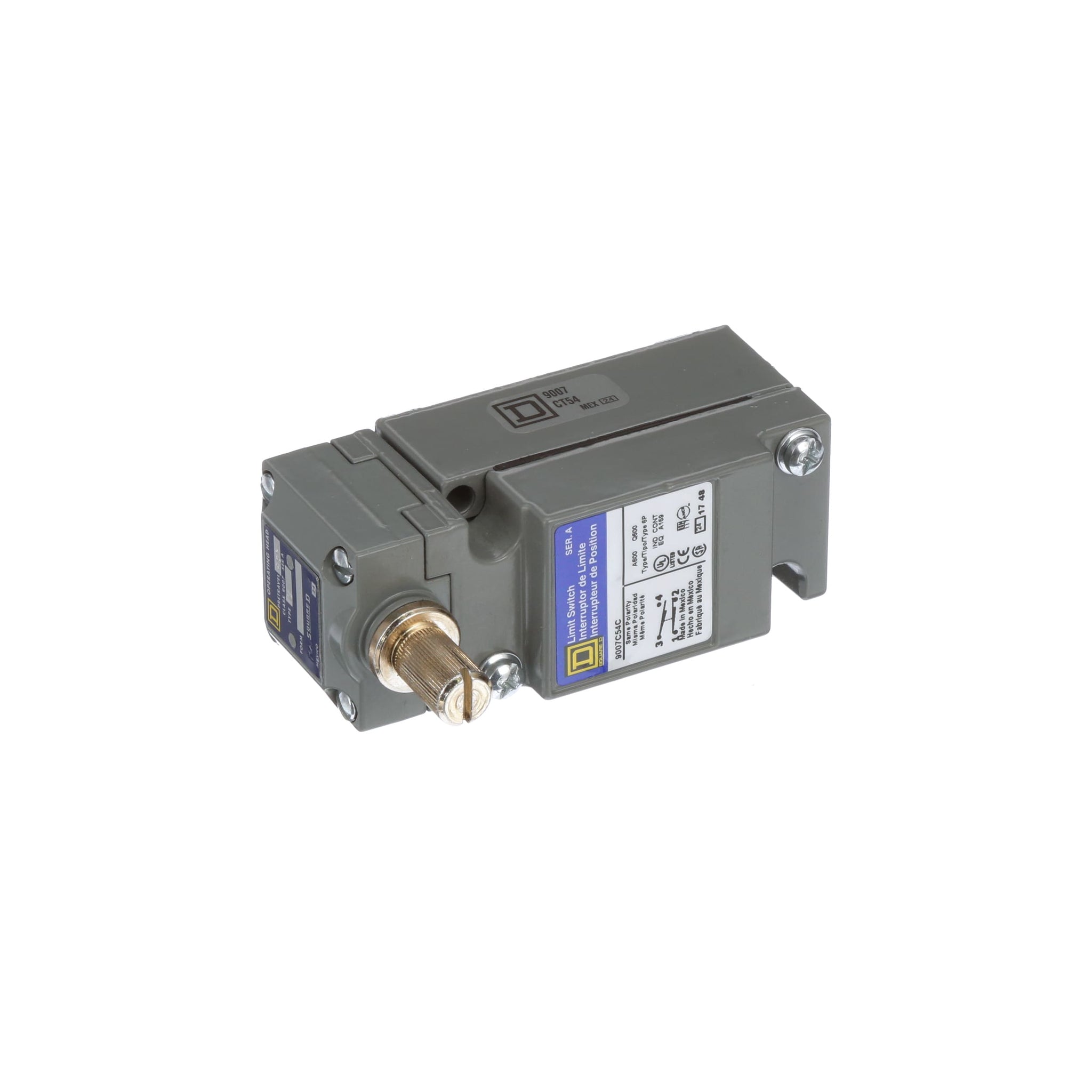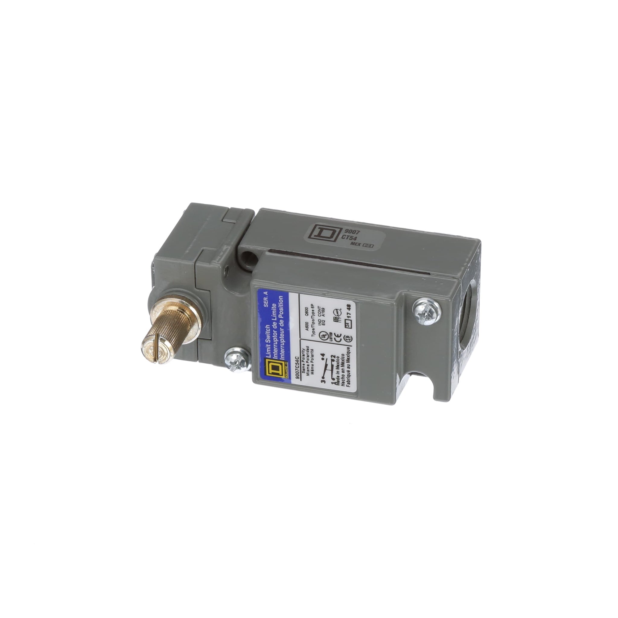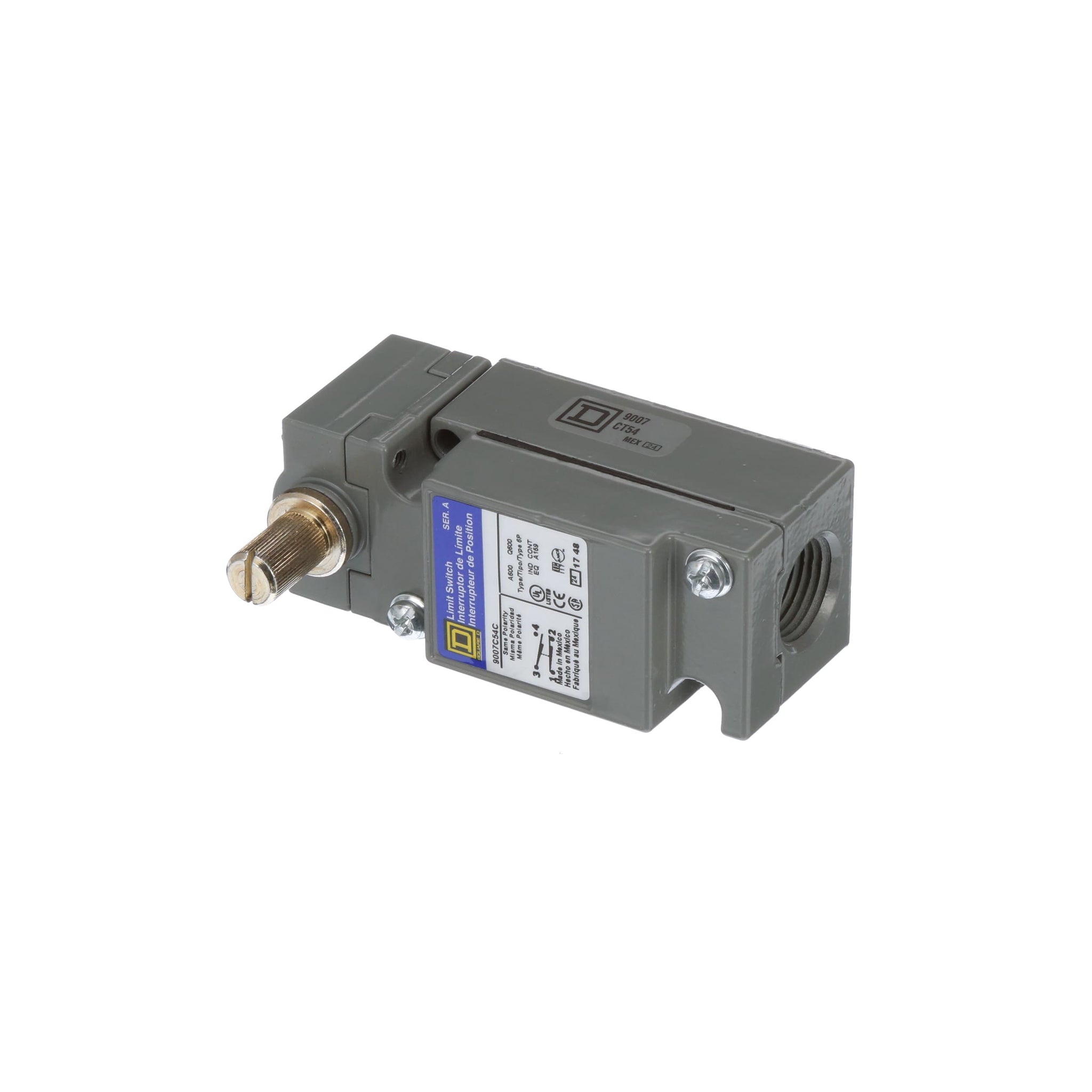 The 9007 MS/ML limit switches have a full range of styles available, including top push plunger, parallel roller plunger, cross roller plunger, rotary lever and omni directional whisker. Factory pre-wiring with industrial grade cable (type SJTO) eliminates the need to remove the cover to wire the switch. Bottom or side entrance cable connections and bottom or side connectors are available along with a symmetrical design and top mounting holes for easy gang mounting of several switches for multiple switching.