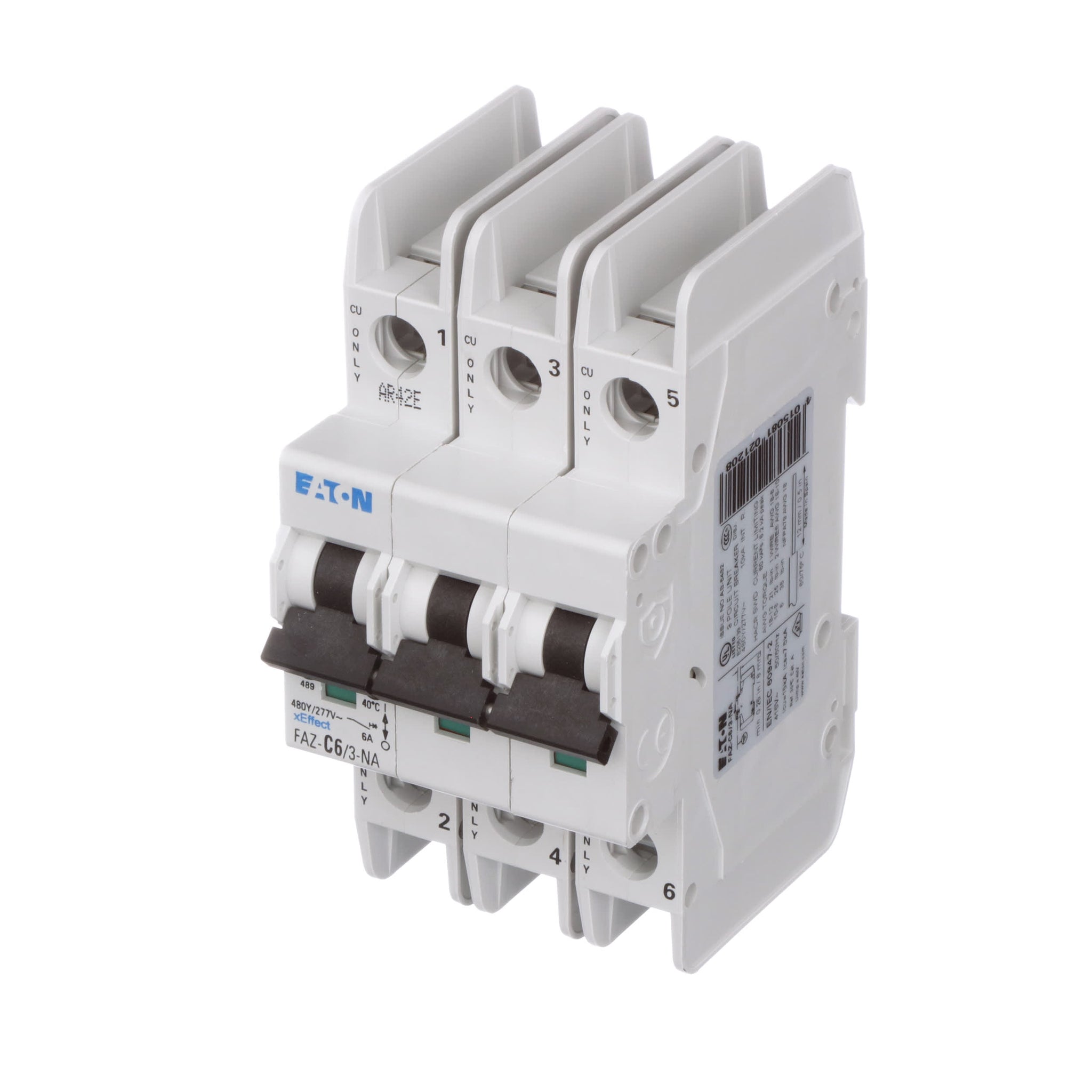 Optimum product quality, tested reliability and safety stand for best protection of personnel, installations and plant. Eaton’s FAZ-NA DIN rail mountable circuit breaker is designed for use in branch service applications. The FAZ-NA Series is available with B, C and D characteristics in accordance with UL 489, CSA C22.2 No.5, UL 1077, CSA C22.2 No.235 and IEC 60947-2. These devices are CE marked.