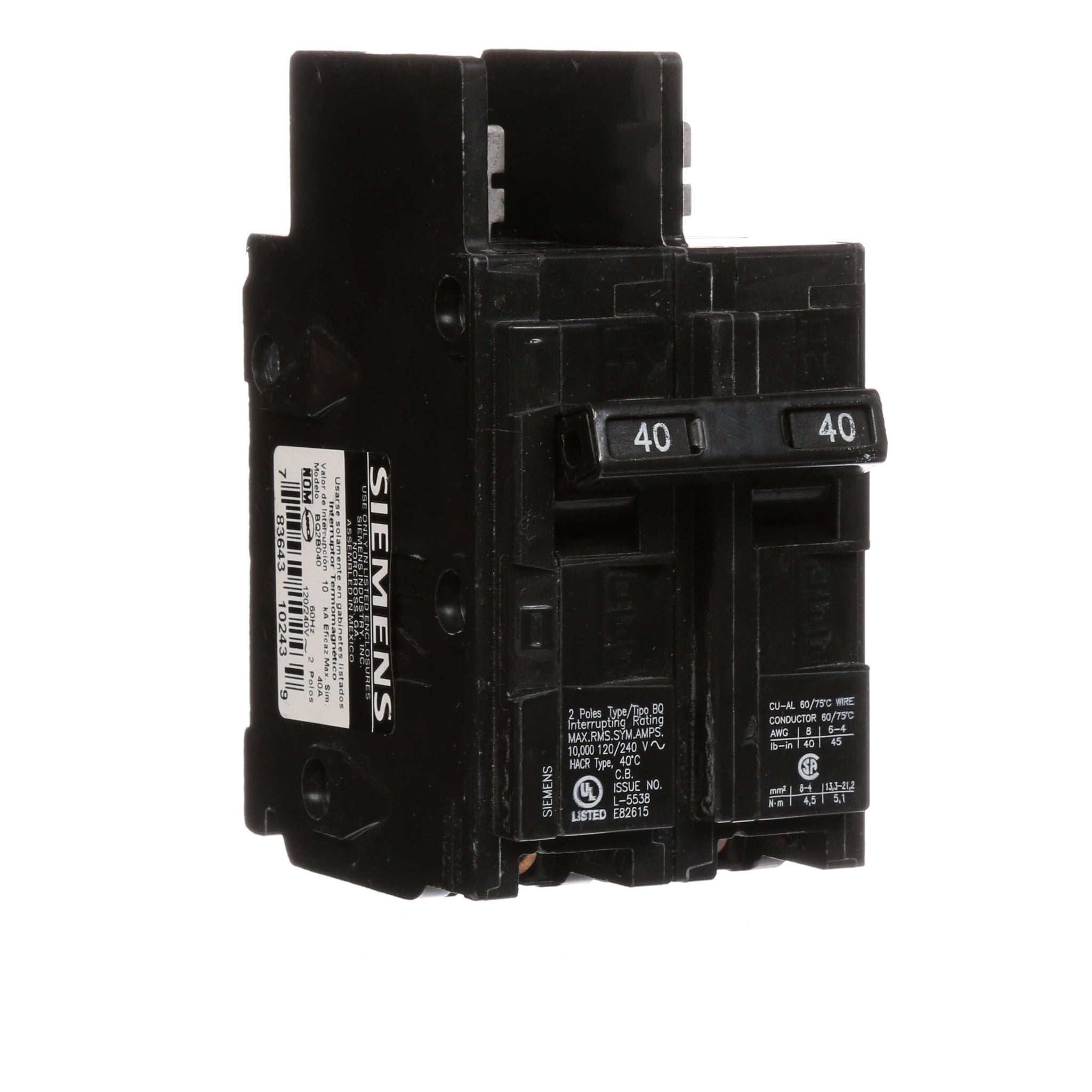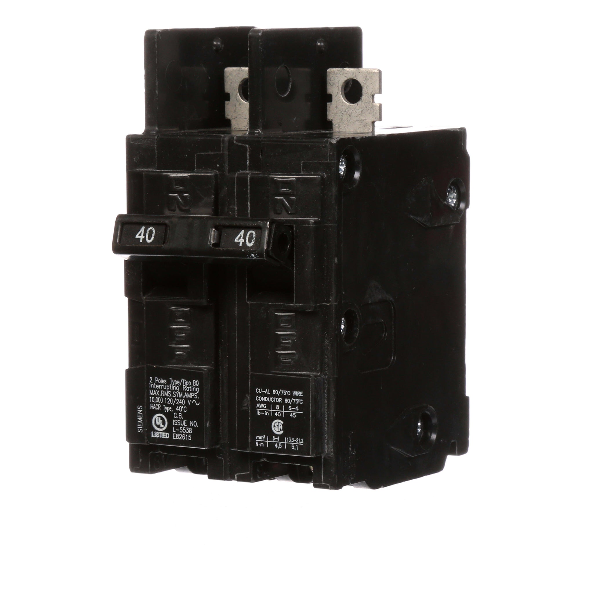 All BQ/BQH/HBQ circuit breakers are supplied with load side lugs. All standard circuit breakers are calibrated for 40°C maximum ambient application.