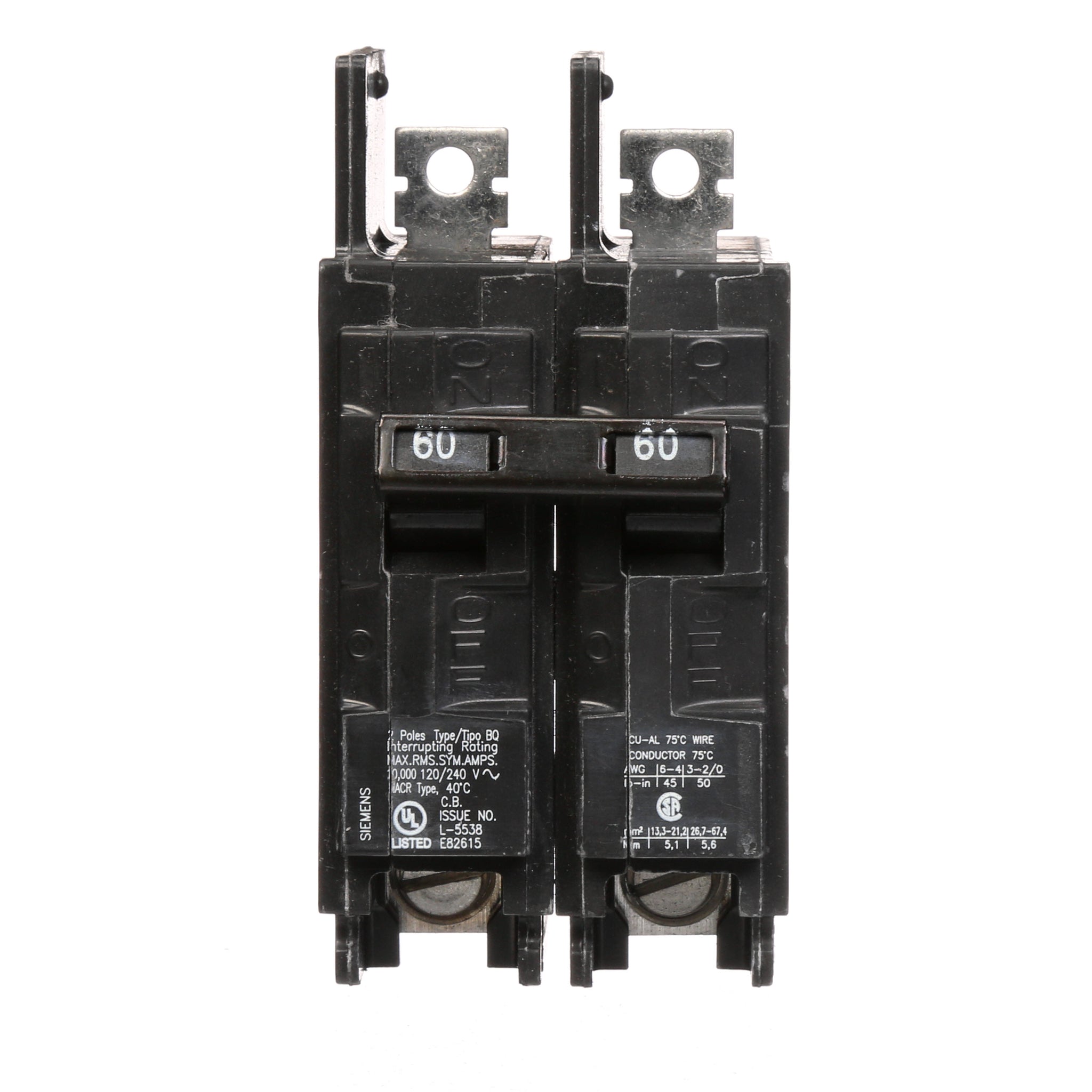 All BQ/BQH/HBQ circuit breakers are supplied with load side lugs. All standard circuit breakers are calibrated for 40°C maximum ambient application.
