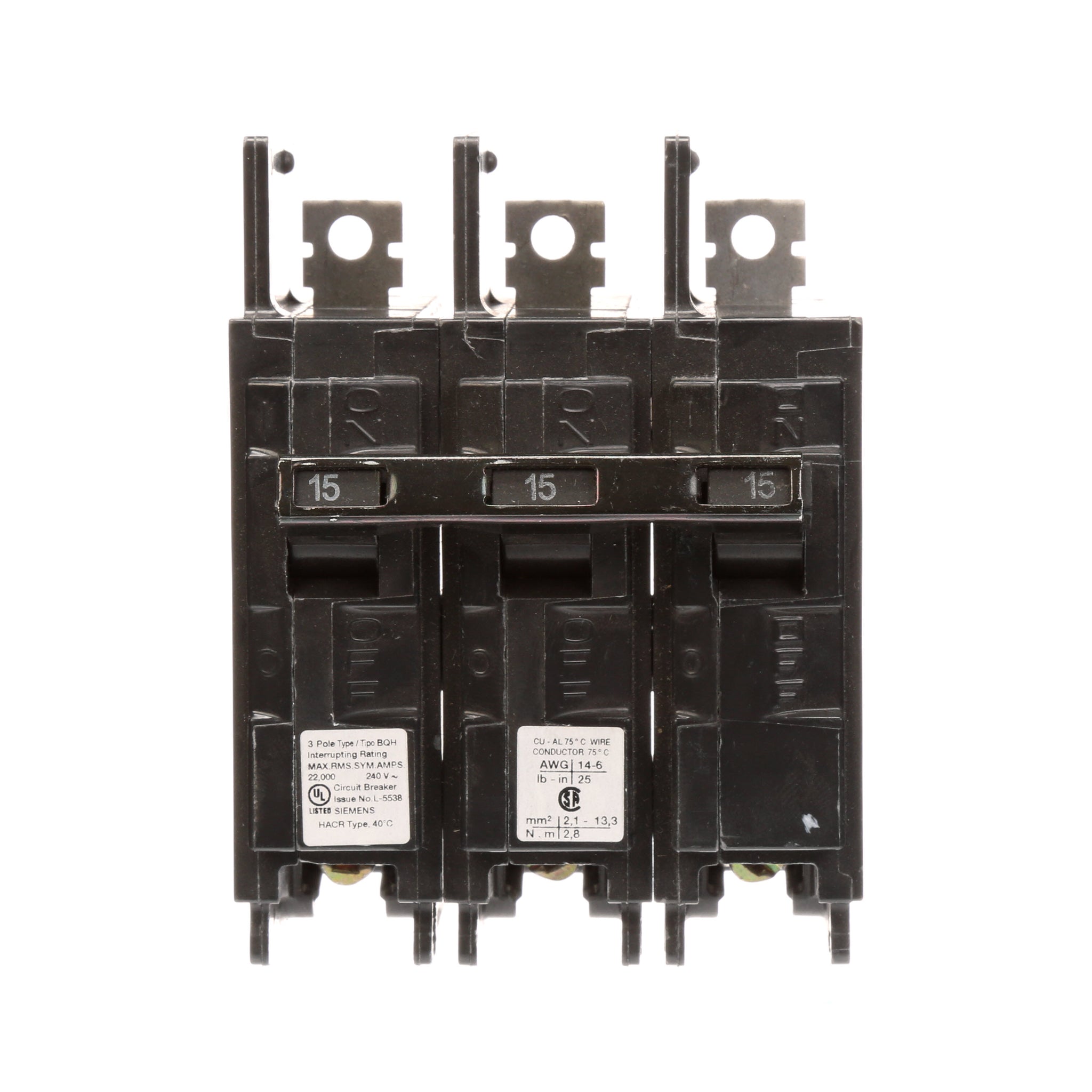 All BQ/BQH/HBQ circuit breakers are supplied with load side lugs. All standard circuit breakers are calibrated for 40°C maximum ambient application.