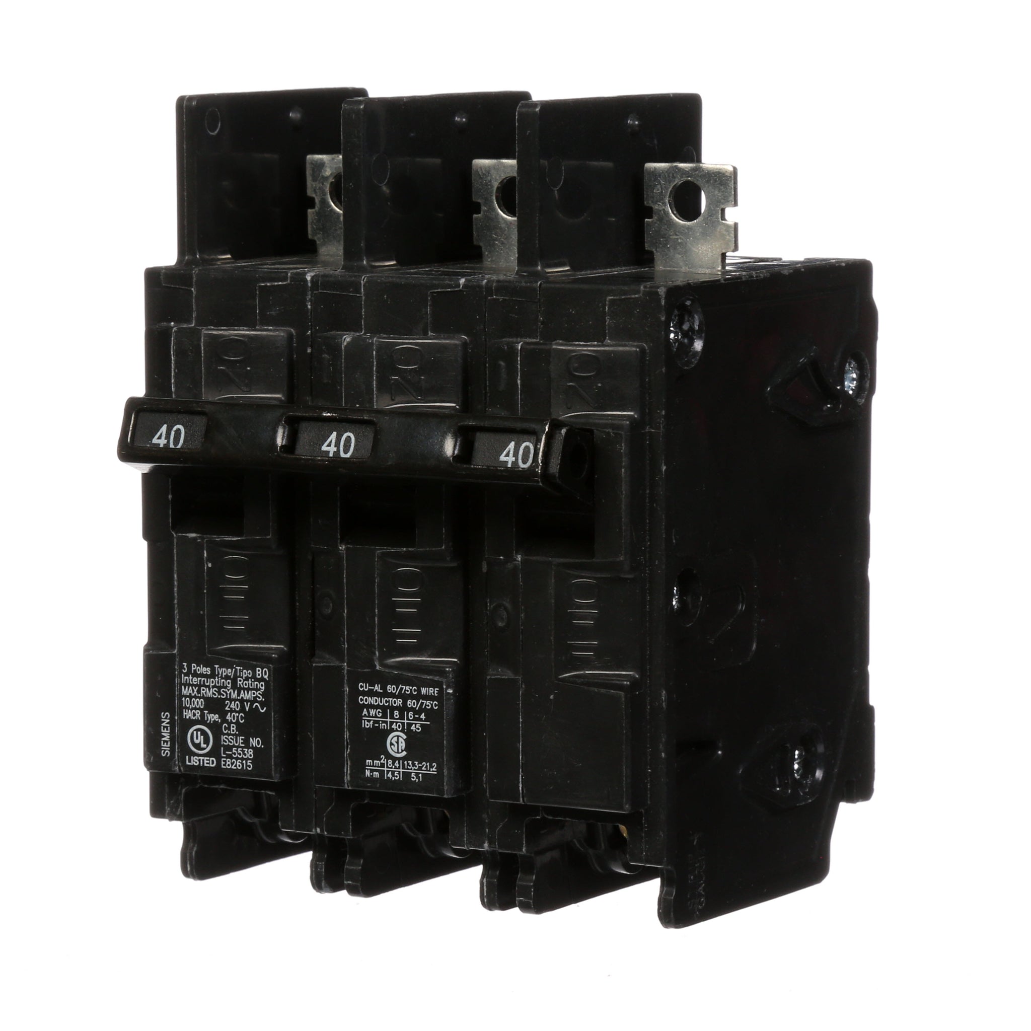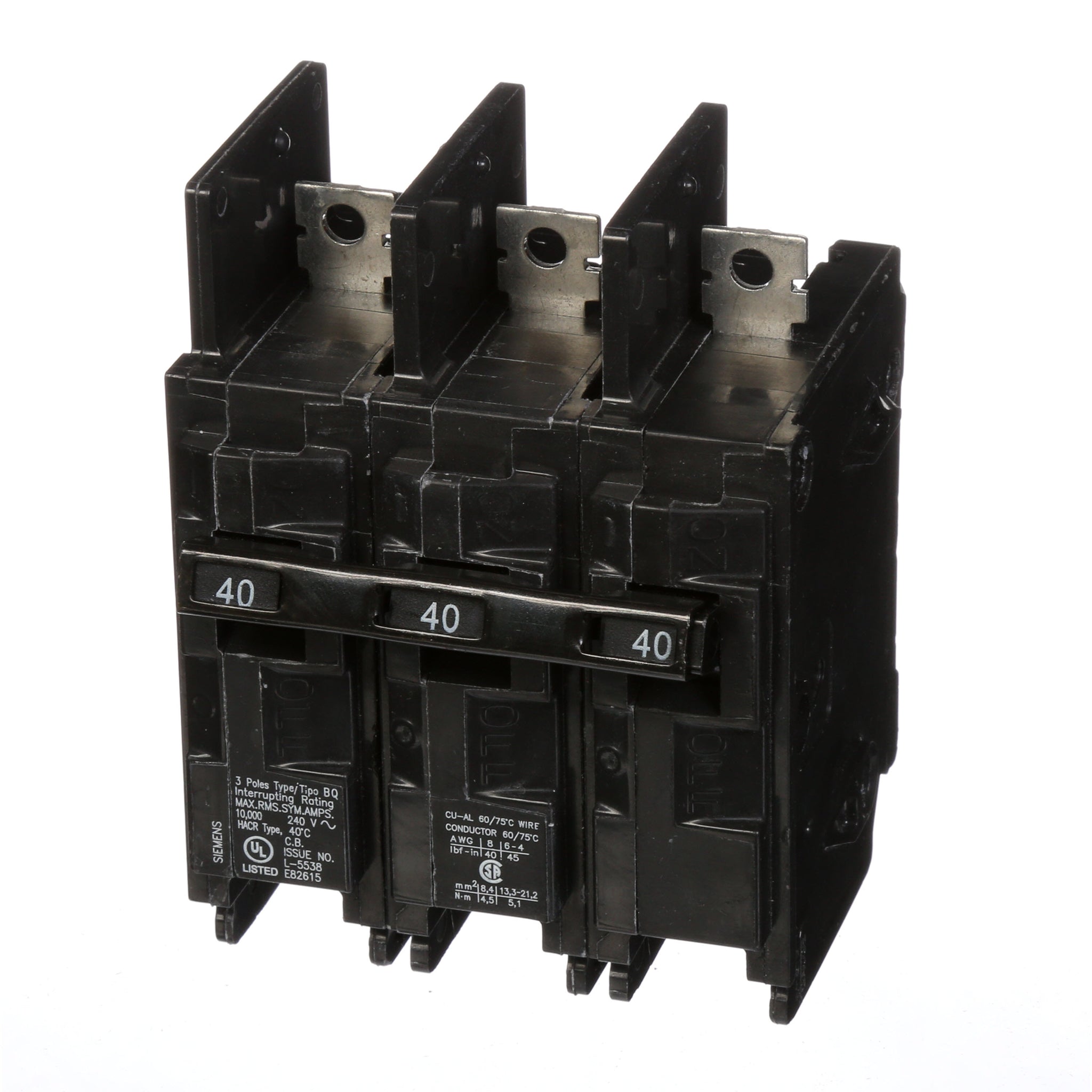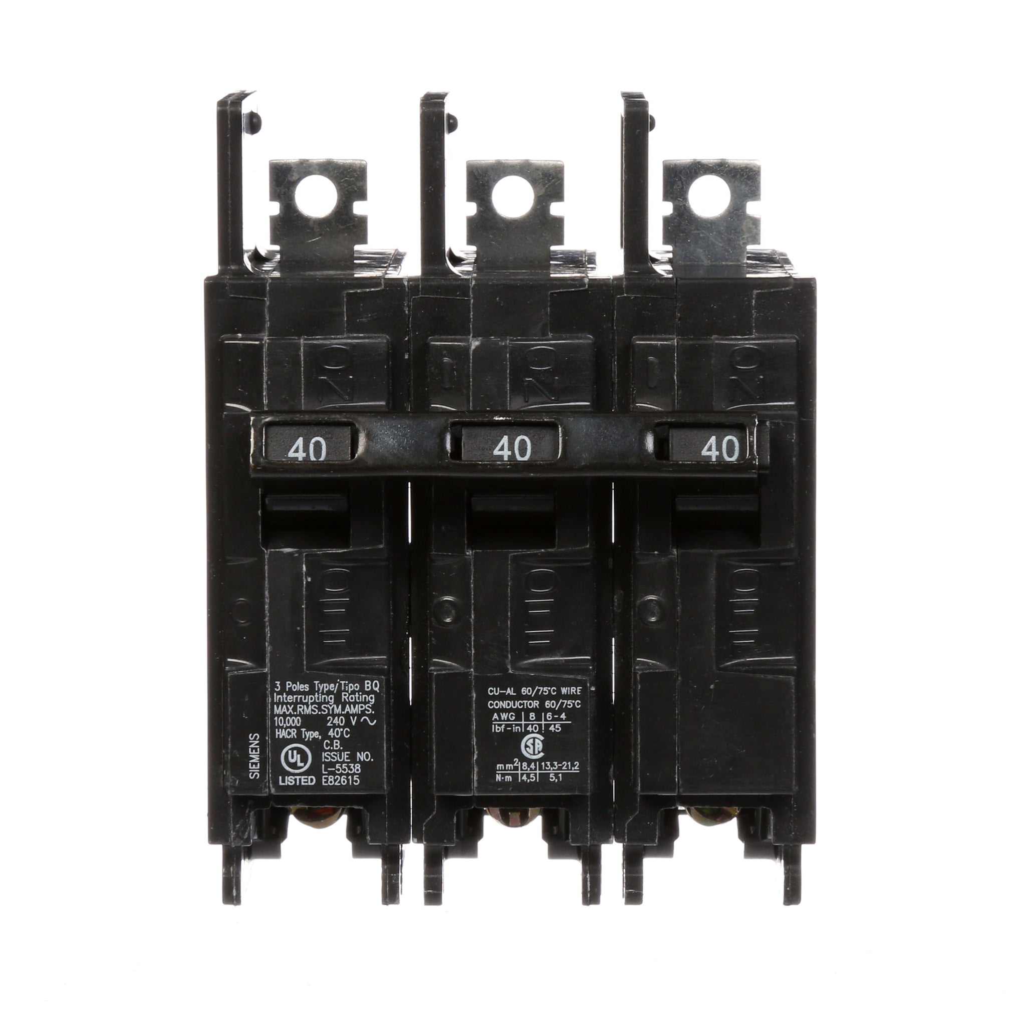 All BQ/BQH/HBQ circuit breakers are supplied with load side lugs. All standard circuit breakers are calibrated for 40°C maximum ambient application.