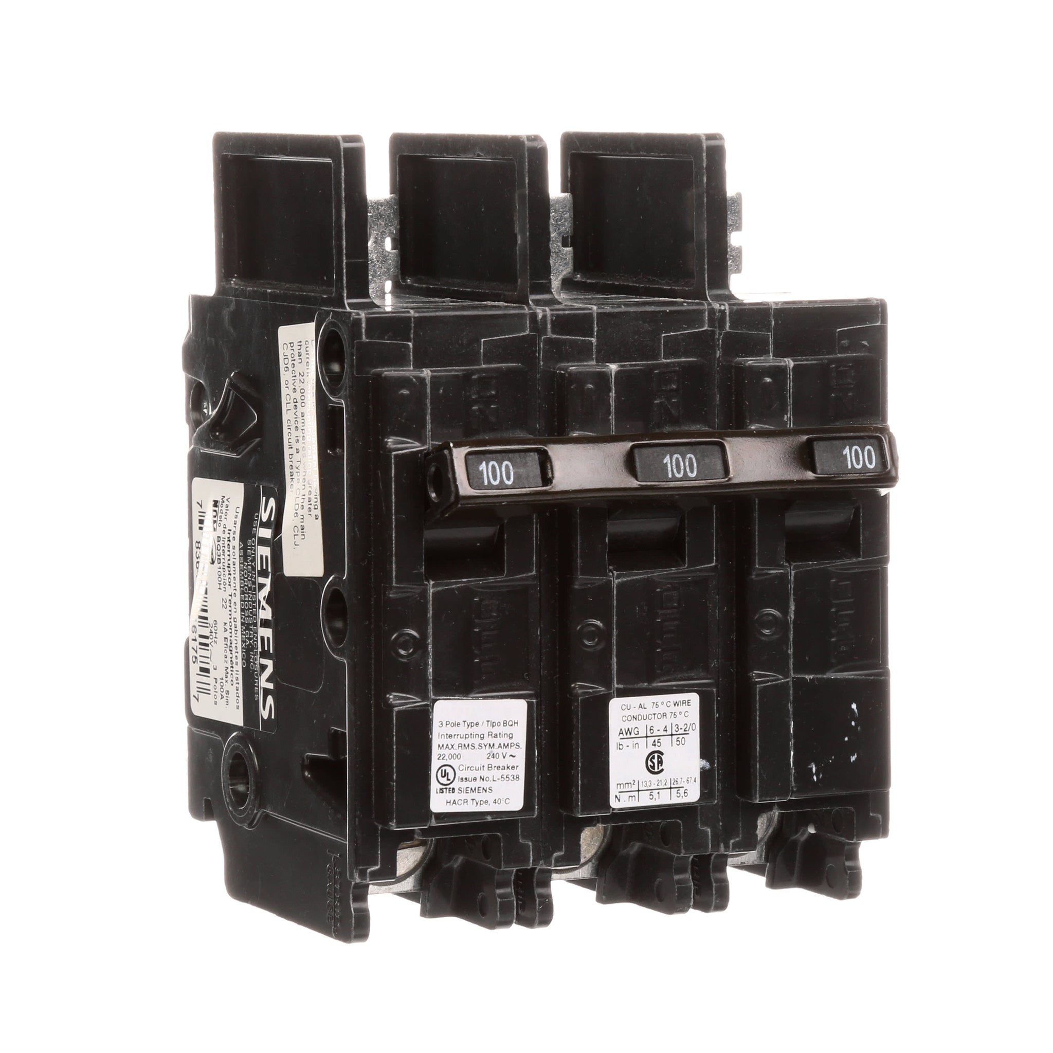 All BQ/BQH/HBQ circuit breakers are supplied with load side lugs. All standard circuit breakers are calibrated for 40°C maximum ambient application.