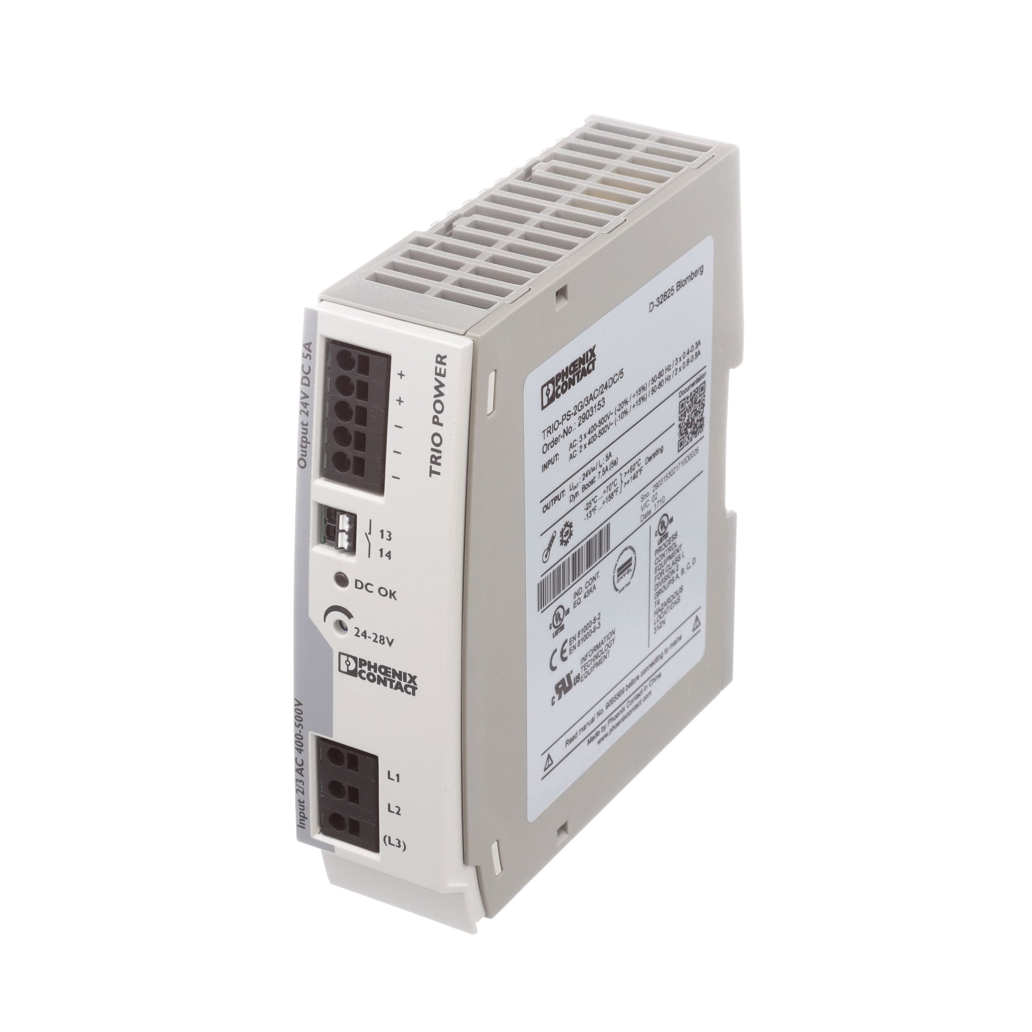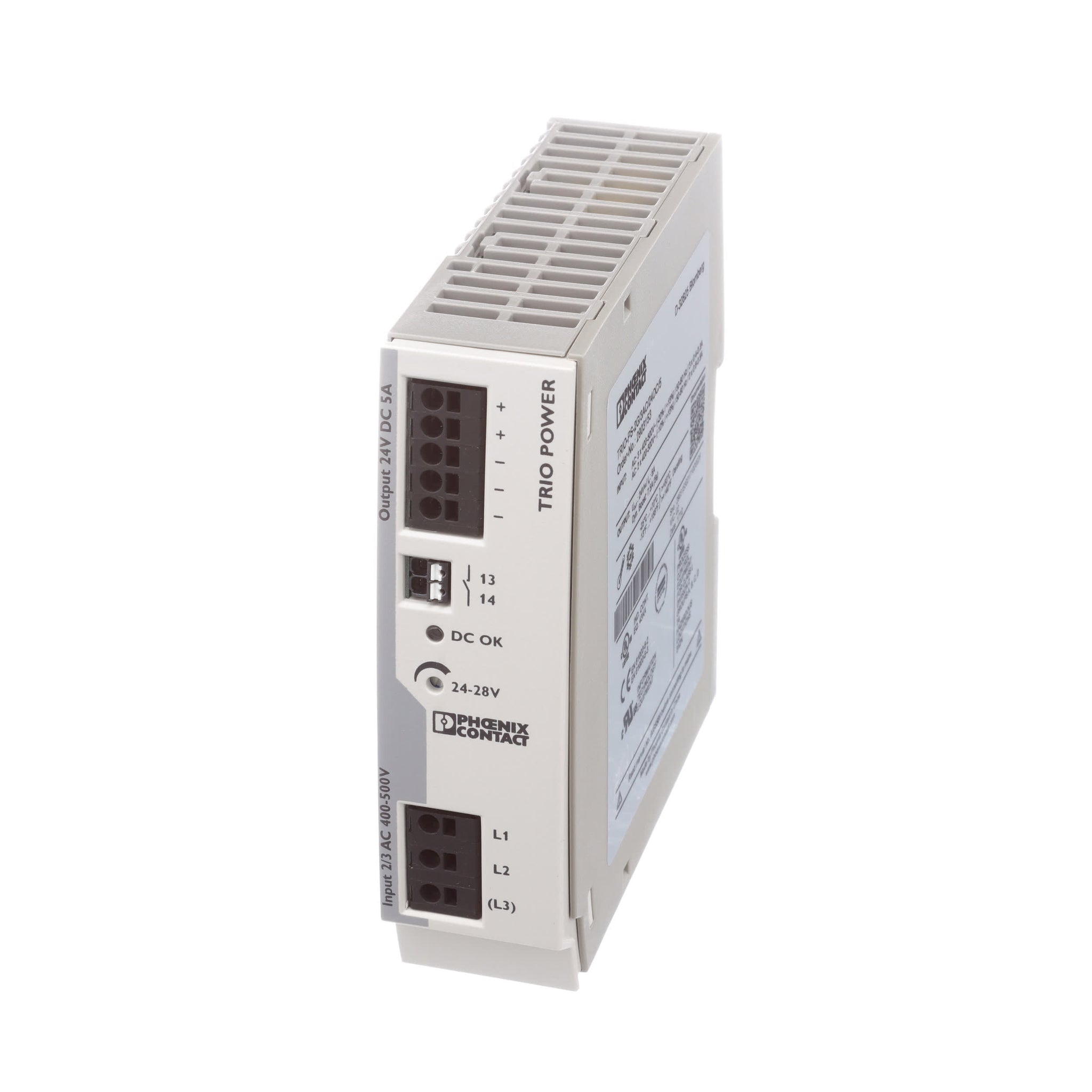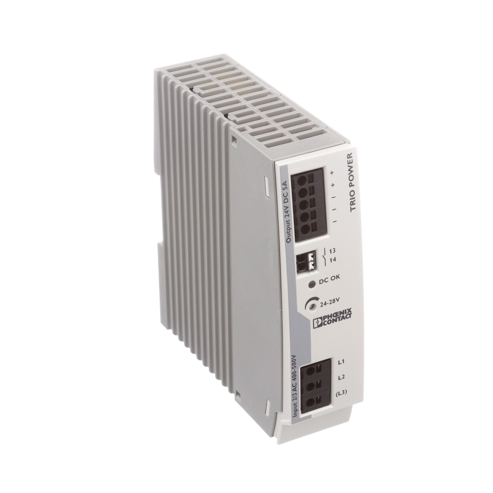 The TRIO Series power supply range with push-in connection has been perfected for use in machine building. All functions and the space-saving design of the single and three-phase modules are optimally tailored to the stringent requirements. Under challenging ambient conditions, the power supply units, which feature an extremely robust electrical and mechanical design, ensure the reliable supply of all loads.