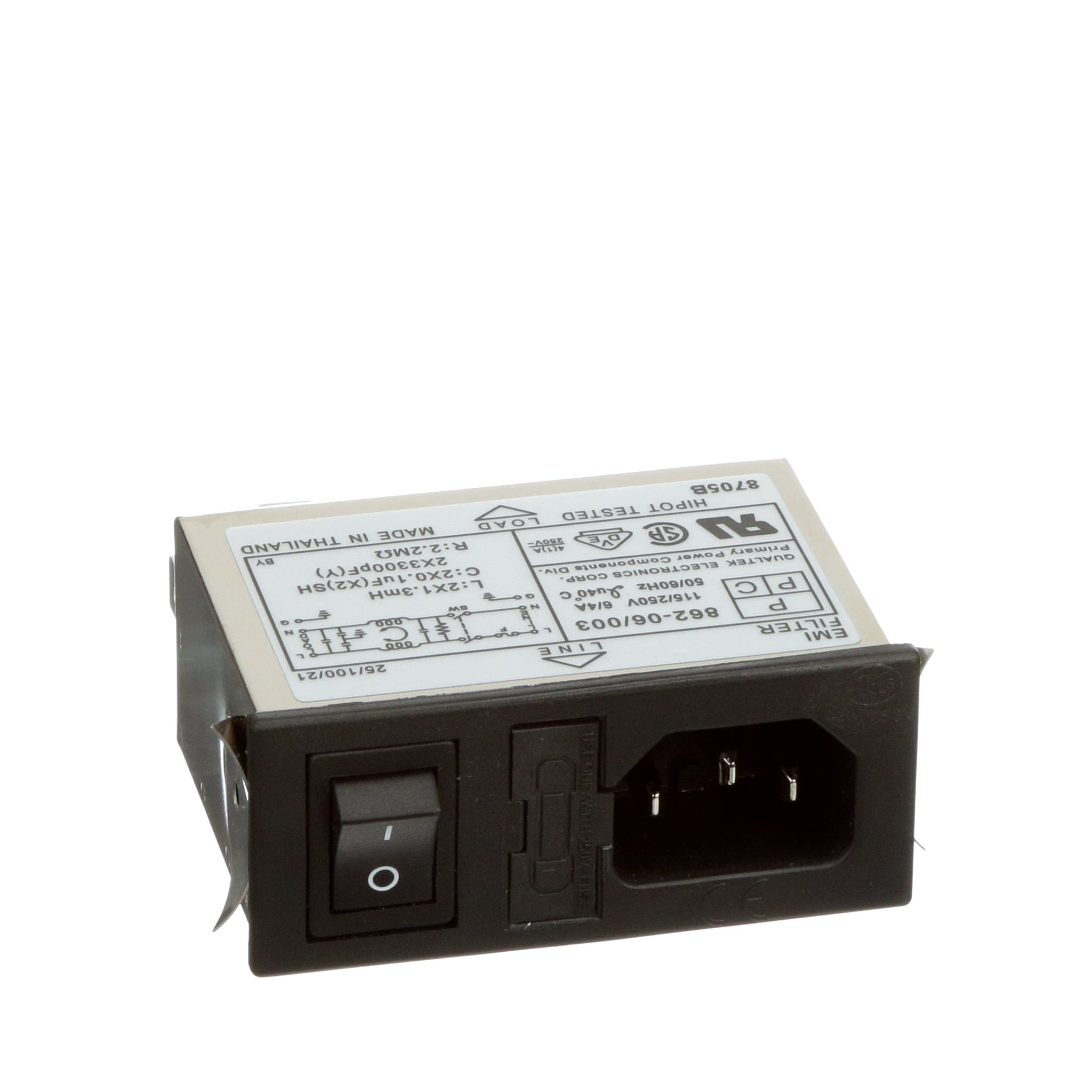The 862 Series multi-function module filters with its compact design provides significant savings in space and cost compared with individual components. This series filter consists of an IEC 320 connector, single fuse (5 × 20 mm) and an optional power on/off switch.