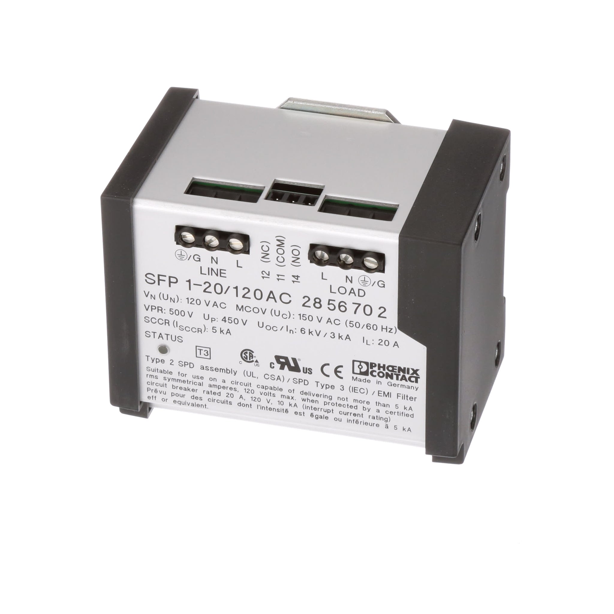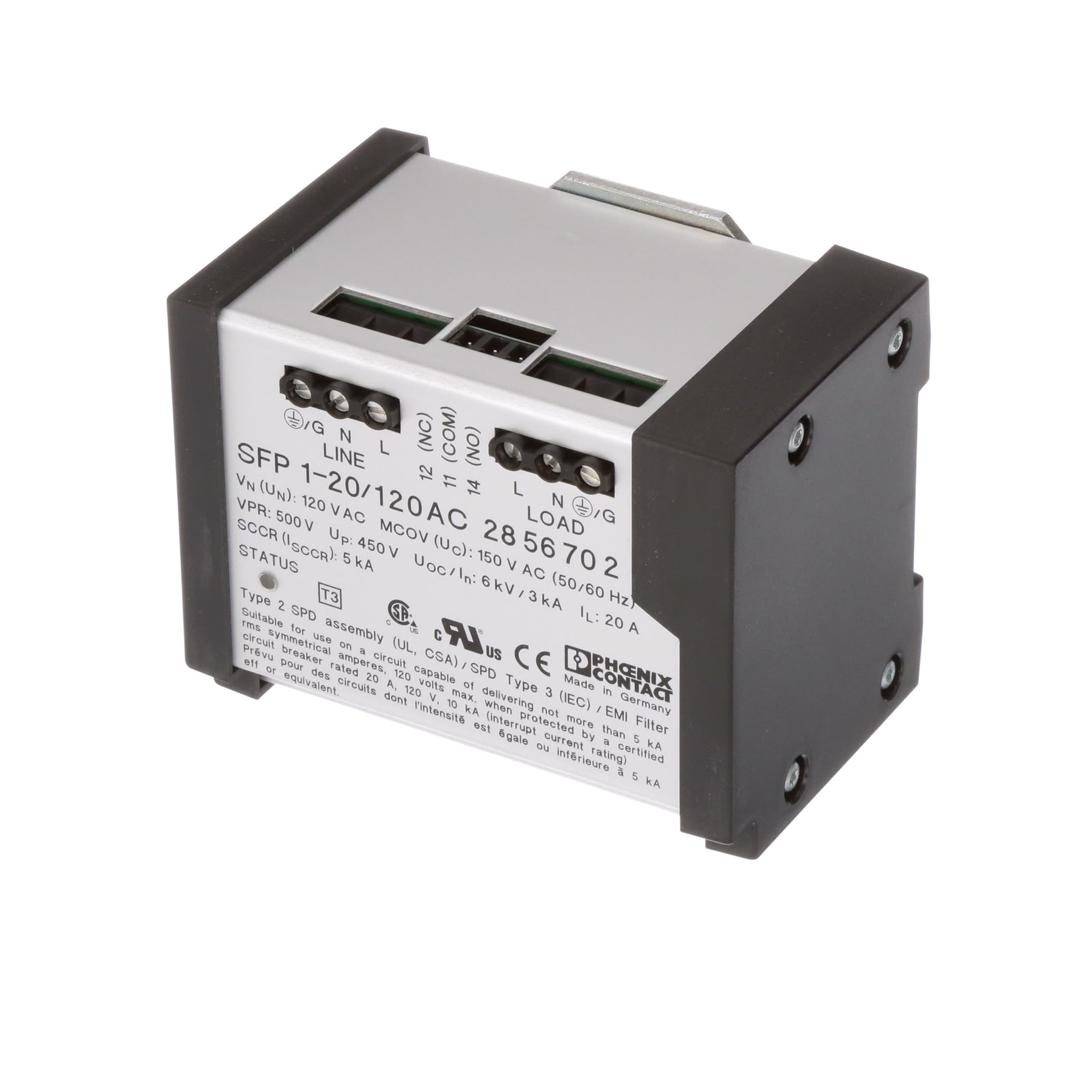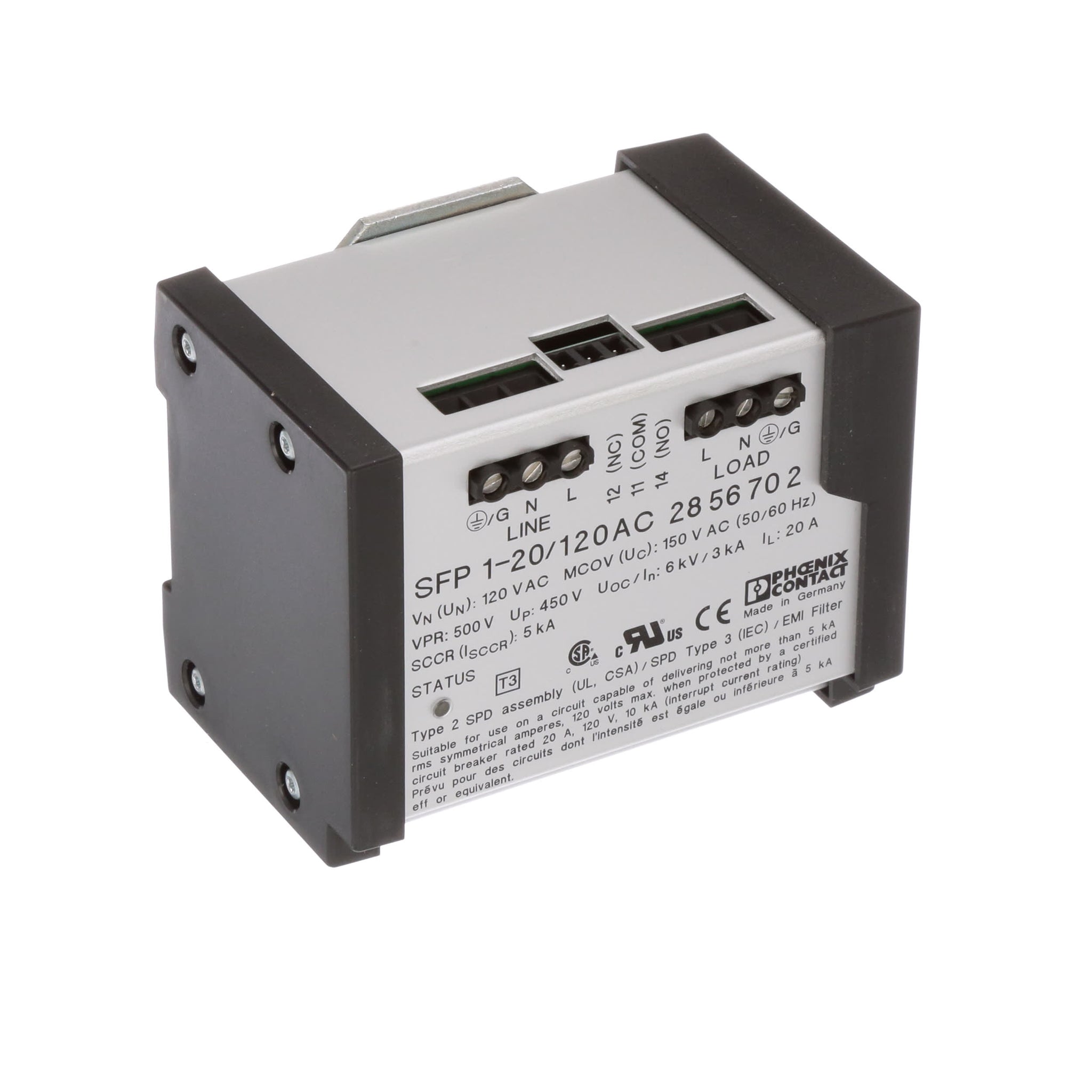 This product provides both EMI/RFI filtering and transient voltage surge suppression in one industrial DIN-rail mount package. Best used in applications where tight clamping and high surge current capabilities are required.